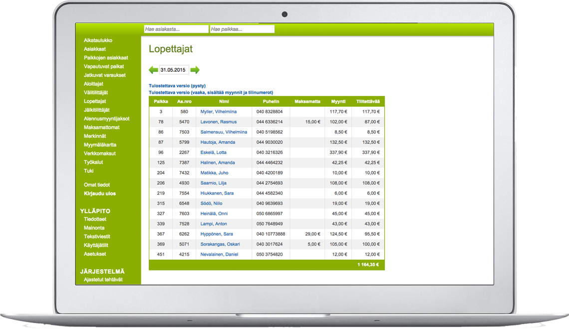 Varausmaksuja voi maksaa helposti kassajärjestelmän kautta ja tieto maksuista kulkee reaaliajassa varausjärjestelmään.