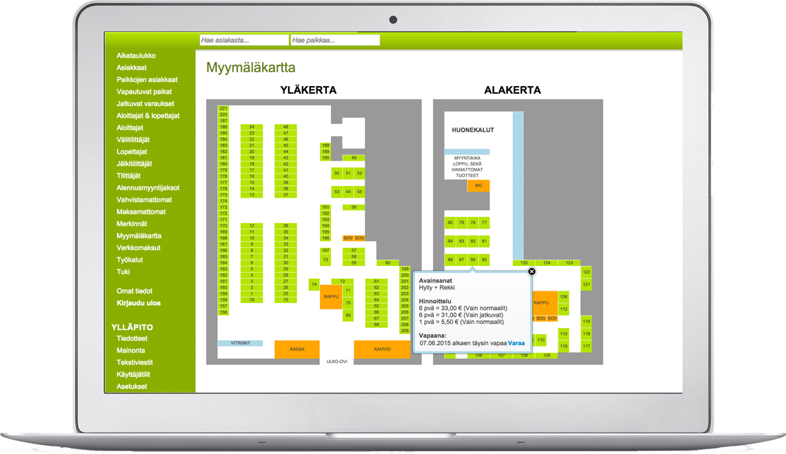 Palveluun on mahdollista määrittää kirpputorin myymäläkartta, jotta asiakkaat näkevät missä myyntipaikat sijaitsevat.